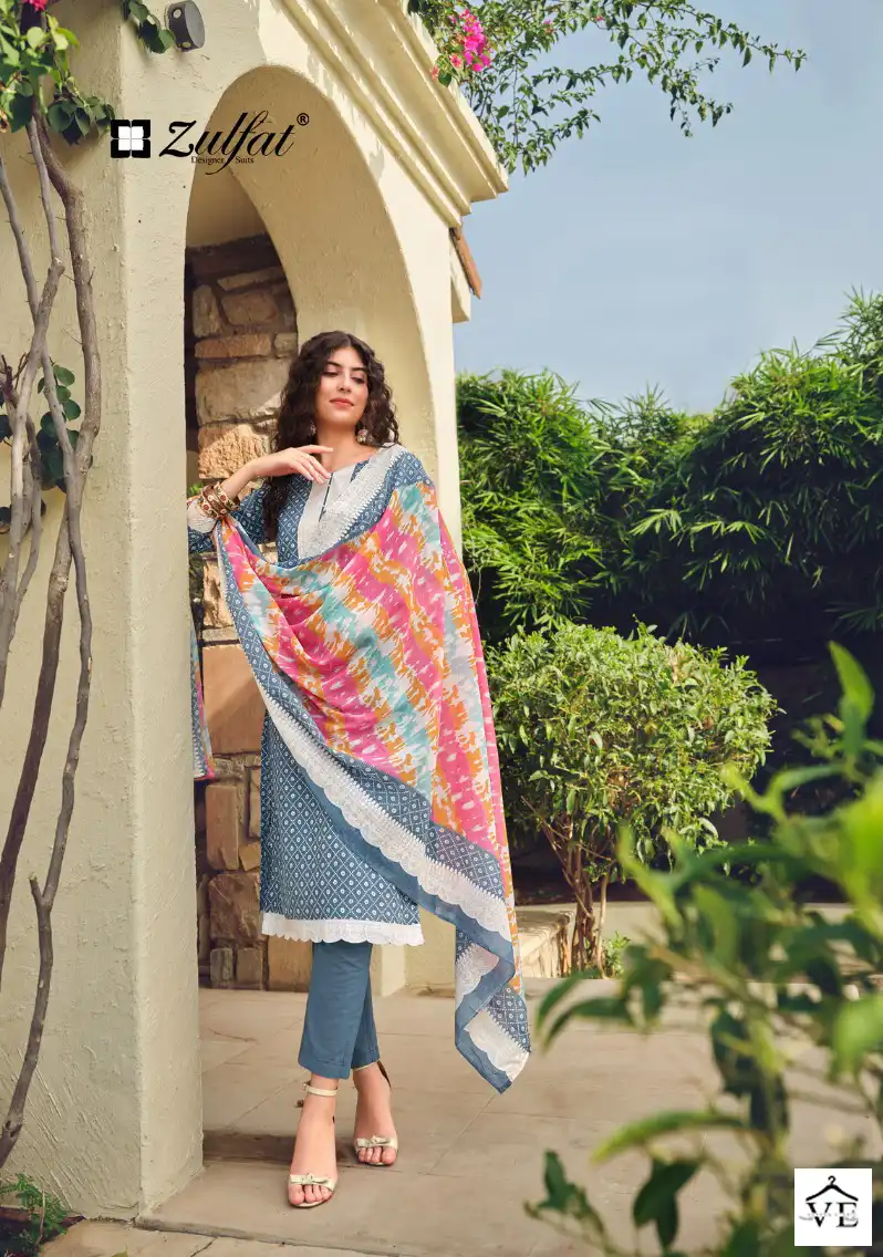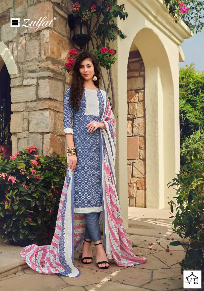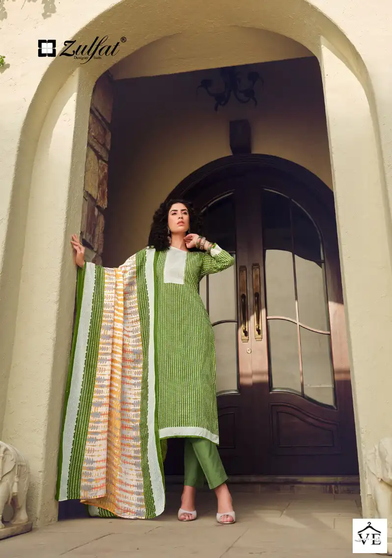 Zulfat Designer Isabella Cotton Wholesale Pakistani Salwar Suit Catalog 8 Pcs. We deal in Kurtis, Sarees, Dresses Materials, Leggings, and Designer Salwar Kameez.